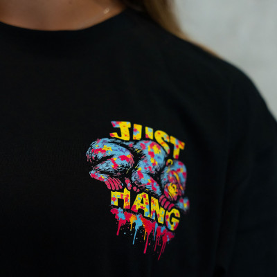 Le T-shirt Unisexe Oversize JUSTHANG Gorilla, présenté ici en coloris noir, est un modèle à manches courtes, conçu pour vos sessions de fitness et de training.