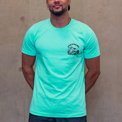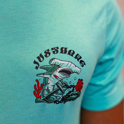 Le T-shirt pour homme JUSTHANG Hammerhead Shark, présenté ici en coloris menthe, est un modèle à manches courtes, conçu pour vos sessions de fitness et de training.