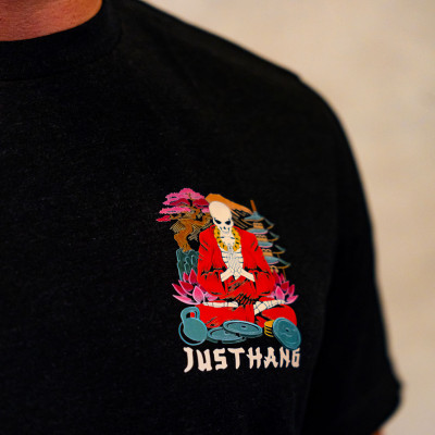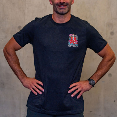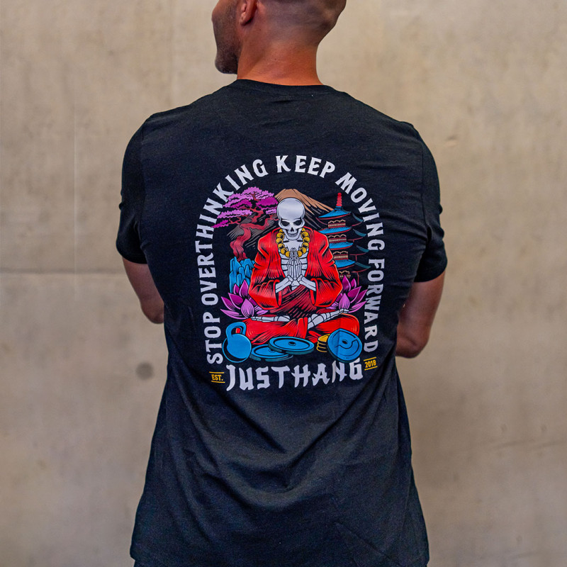 Le T-shirt pour homme JUSTHANG Positive Thoughts, présenté ici en coloris noir, est un modèle à manches courtes, conçu pour vos sessions de fitness et de training.