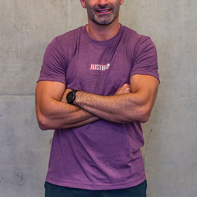 Le T-shirt pour homme JUSTHANG Japan Graph, présenté ici en coloris bordeaux, est un modèle à manches courtes, conçu pour vos sessions de fitness et de training.