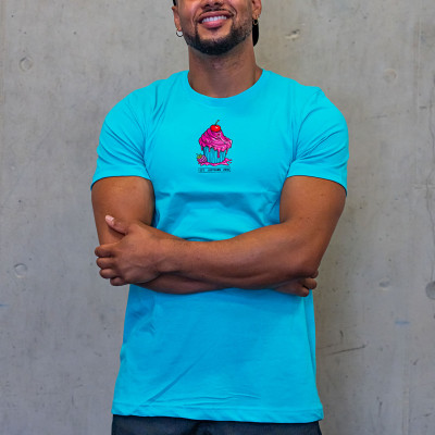 Le T-shirt pour homme JUSTHANG Cupcake, présenté ici en coloris bleu émeraude, est un modèle à manches courtes, conçu pour vos sessions de fitness et de training.