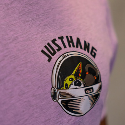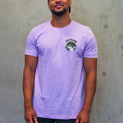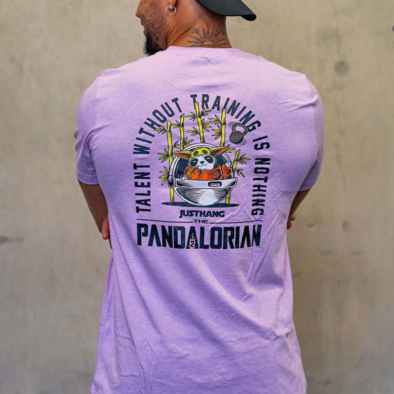 Le Tee-Shirt pour homme JUSTHANG Pandalorian, présenté ici en coloris lavande, est un modèle à manches courtes, conçu pour vos sessions de fitness et de training.