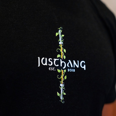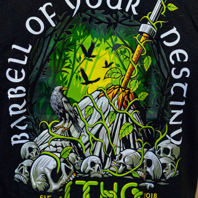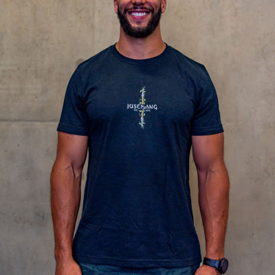 Le T-shirt pour homme JUSTHANG Barbell Destiny, présenté ici en coloris noir, est un modèle à manches courtes, conçu pour vos sessions de fitness et de training.